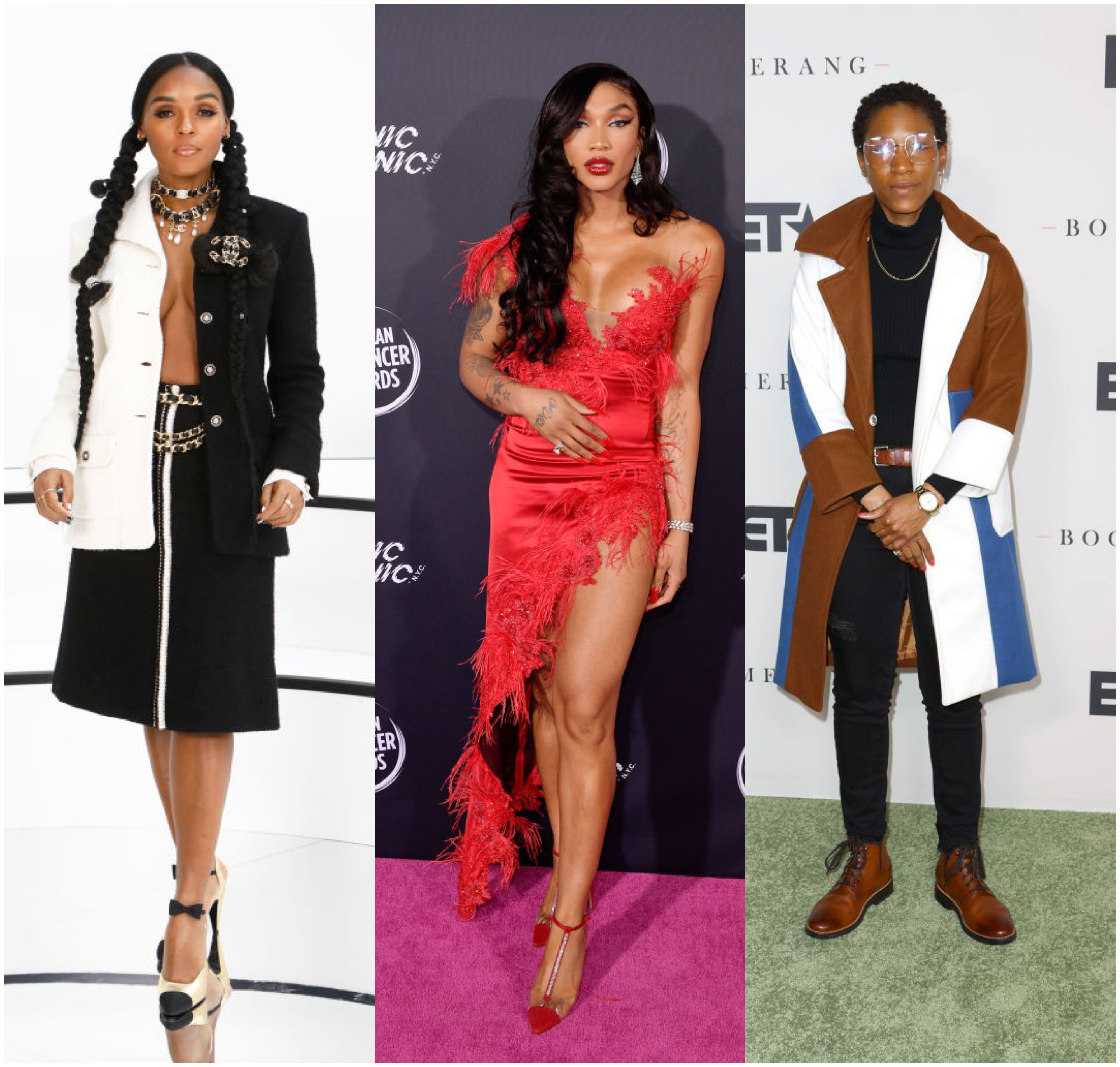 Can we get into the beauty that is Jonica T. Gibbs? The Twenties actress attended the premiere of BET’s “Boomerang” Season 2 clad in an all black ensemble with a brown, white, and blue color block coat over it.