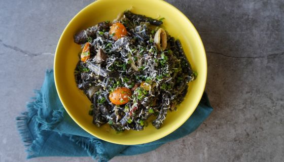 Chef Bren prepares our new favorite weekend meal with her pesto squid ink pasta recipe!
